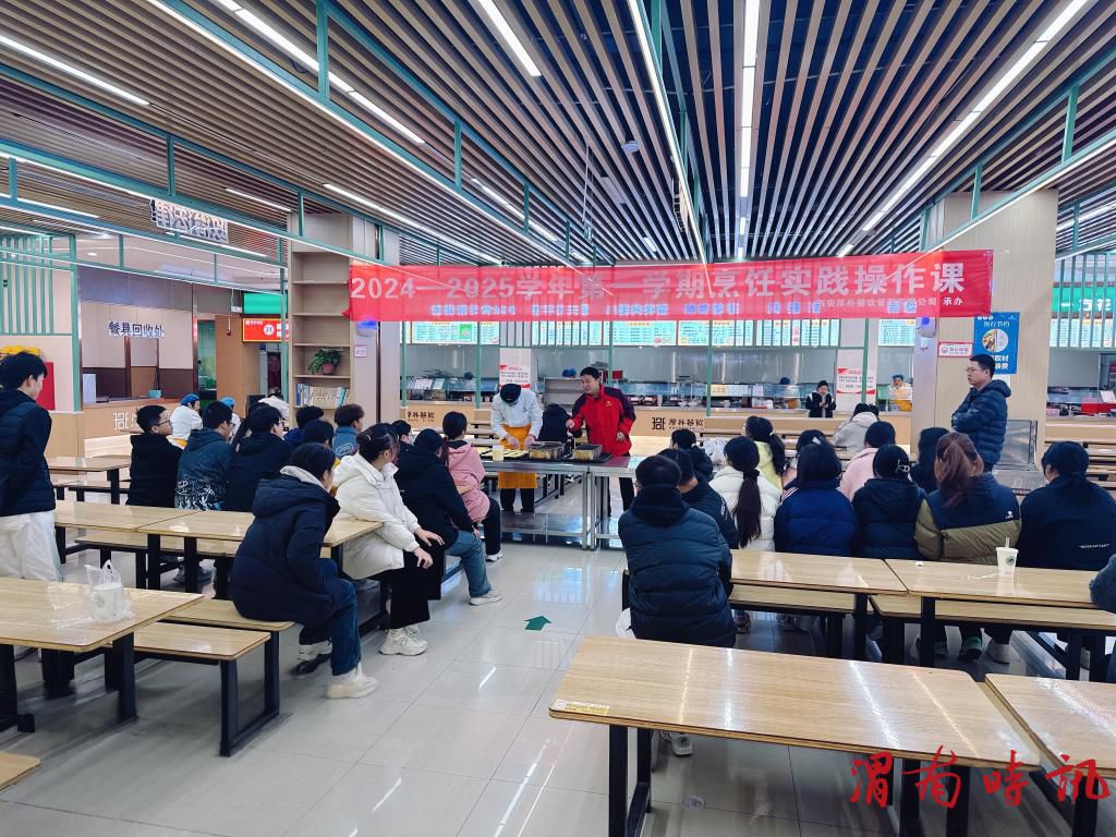 理论教学由中国烹饪大师、高级营养师、健康管理师、国家中餐烹调技师、陕西餐饮服务量化分级评定专家袁红武老师主讲,通过分析当前高校餐厅供餐现状、在校生的营养现状及两者之间的关系、存在的问题,向同学们传授健康饮食理念和方法;讲解了食材的选择处理、形状搭配、属性功能、烹饪顺序、安全卫生等基础常识,重点比对了学校食堂、饭店、外卖操作间在原料采购、存储、人员健康管理、制作流程、环境卫生、添加剂使用、行业监督等关键环节的差异,倡导大学生养成学校食堂就餐习惯。